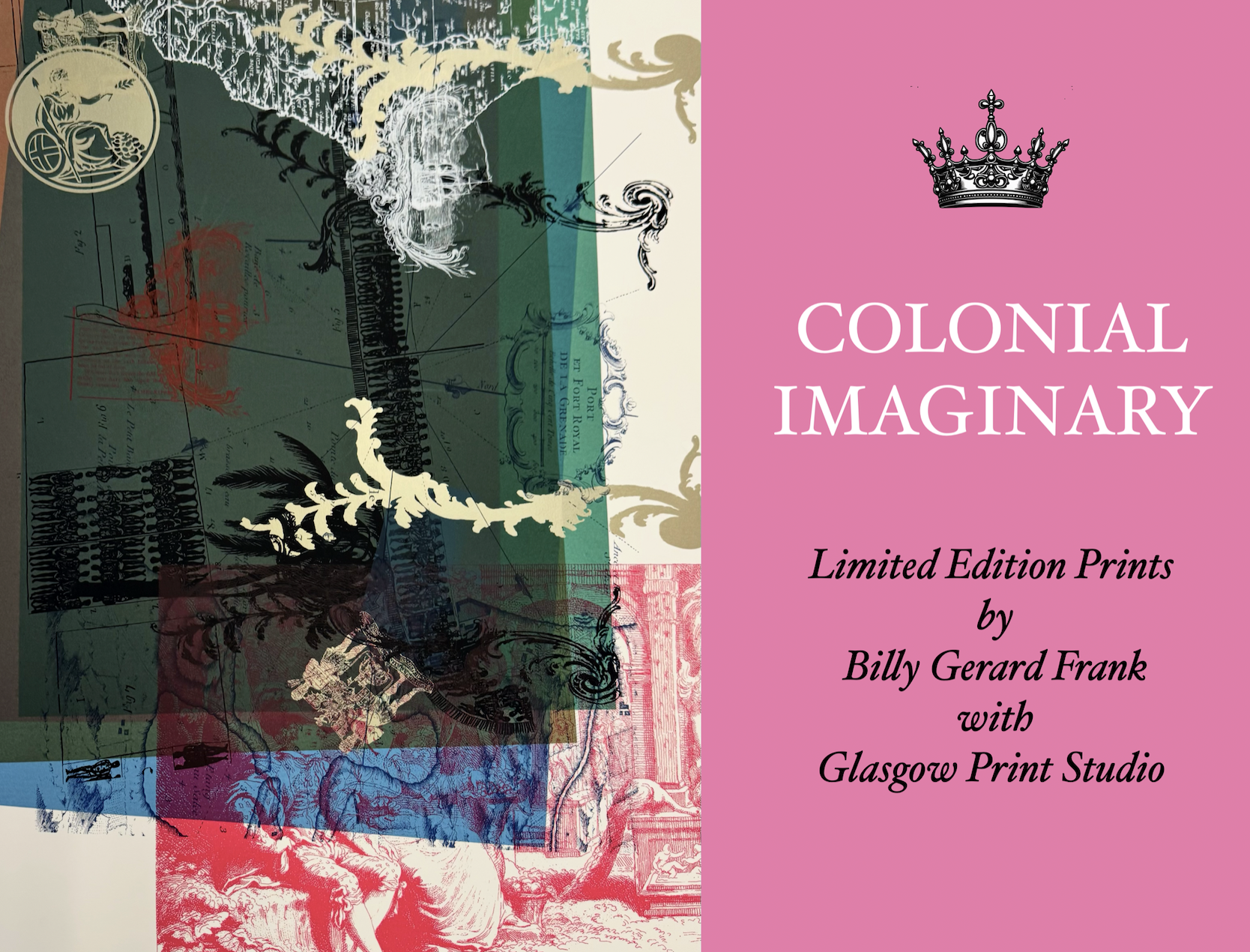 Colonial Imaginary No.4 juxtaposes a Blackamoor marble sculpture with a stately portrait of Queen Elizabeth I (1558–1603), who financed early slave-trading ventures led by John Hawkins, receiving both royal ships and a share of the profits. The emblem of the Royal African Company—founded in 1660 and granted a crown-sanctioned monopoly over English trade along the West African coast—features prominently, exposing the deep entanglements of monarchy, commerce, and colonial violence.